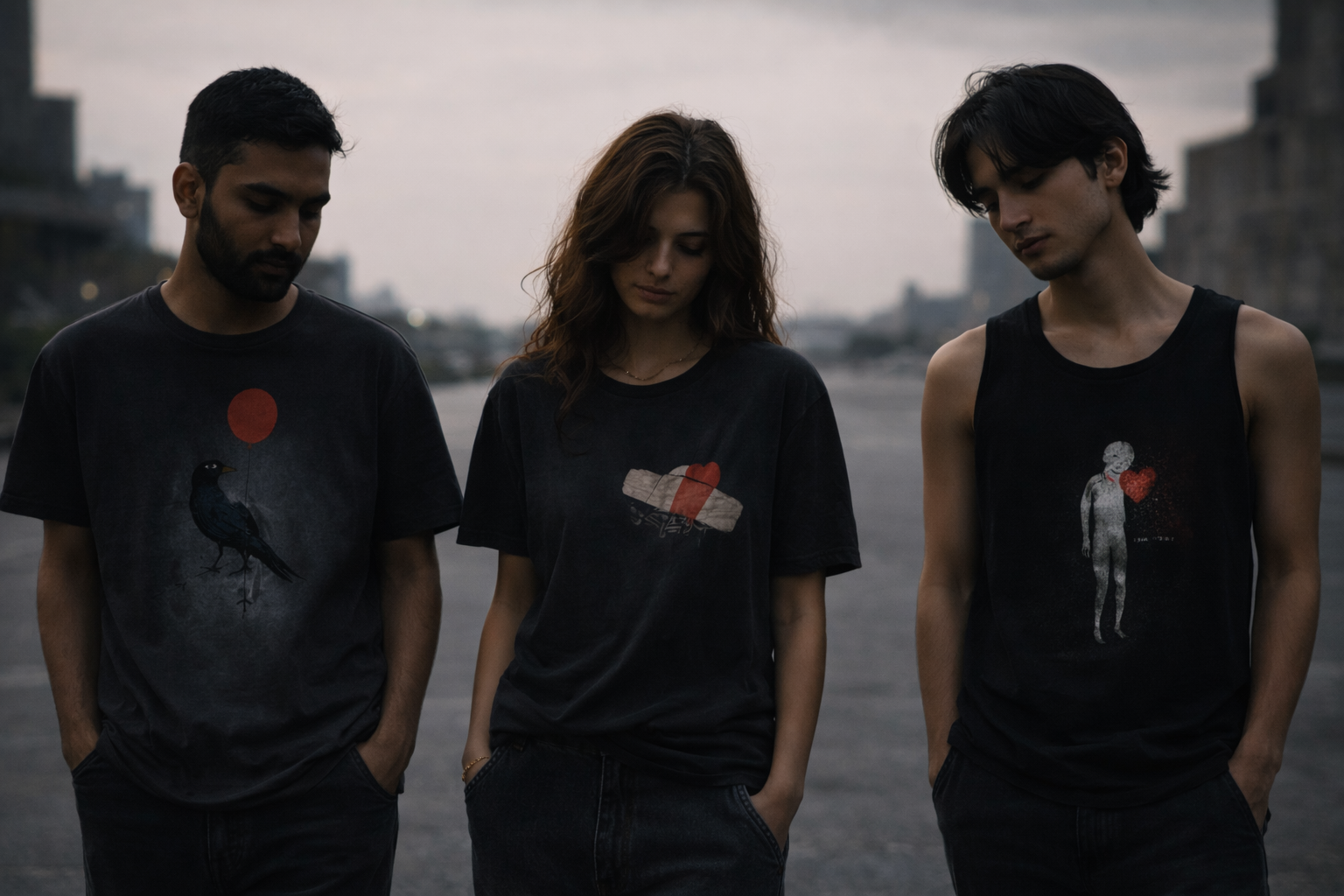 Our signature collection with crows, balloons, bandaids - intimate, symbolic, and unmistakably ours.